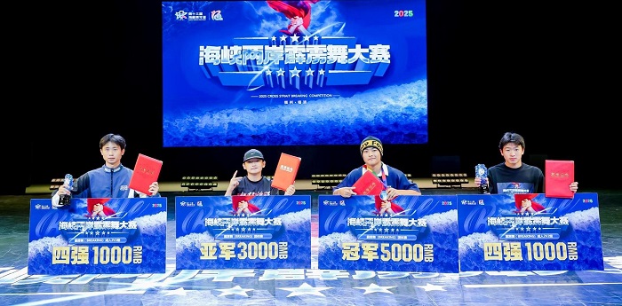 【記者易成功、王輝丹/福州報導】在第十三屆海峽青年薈的重要活動中,「霹靂同心 舞連海峽」二○二五海峽兩岸(福州)霹靂舞大賽總決賽於昨(四)日在福建福清市文化藝術中心展開激烈競爭。成人組冠軍由童傑榮(福建)、彭聖喬(臺灣)聯合組成的隊伍奪得,少兒組新秀蘇巧雲(福建)以高難度動作震撼全場,團隊交流賽則由「舞聚同心」、「霹靂英雄隊」分獲冠亞軍。