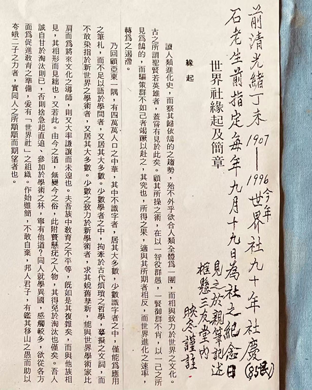所以說,世界社乃粥會前身、也就是其先進社團、延續精神文人組織,自最初擴武文源,到後來脫胎換骨,轉化為崇文尚武、文化人士之雅集,至今已有120年歷史,比粥會1924年成立於上海,還要早上17個年頭!今天同時議事運作,商訂今年之內辦理,「百年粥會名賢名家逸品會展」活動,旨在承先啟後,繼往開來雅趣。