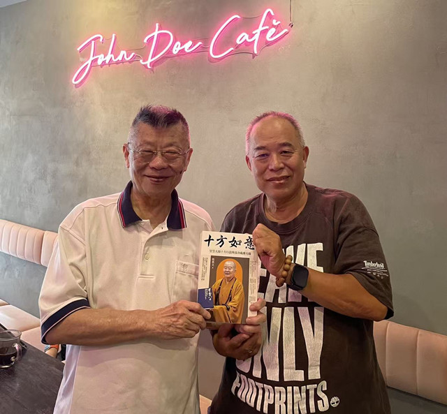 「中華預備軍官聯誼會副會長張同科學長,近日內將代表前往北京從事文化藝術交流活動,行前的今天下午,特地約集咖啡聚會,送行並致送常銷書《十方如意:星雲大師十方行誼與我卅載佛光緣》(陸炳文著,時報出版印行,出版日期2022年1月18日)兩册,其中之一請代為轉贈大陸友人結緣。」預官會會長陸炳文博士今(24)日稱。