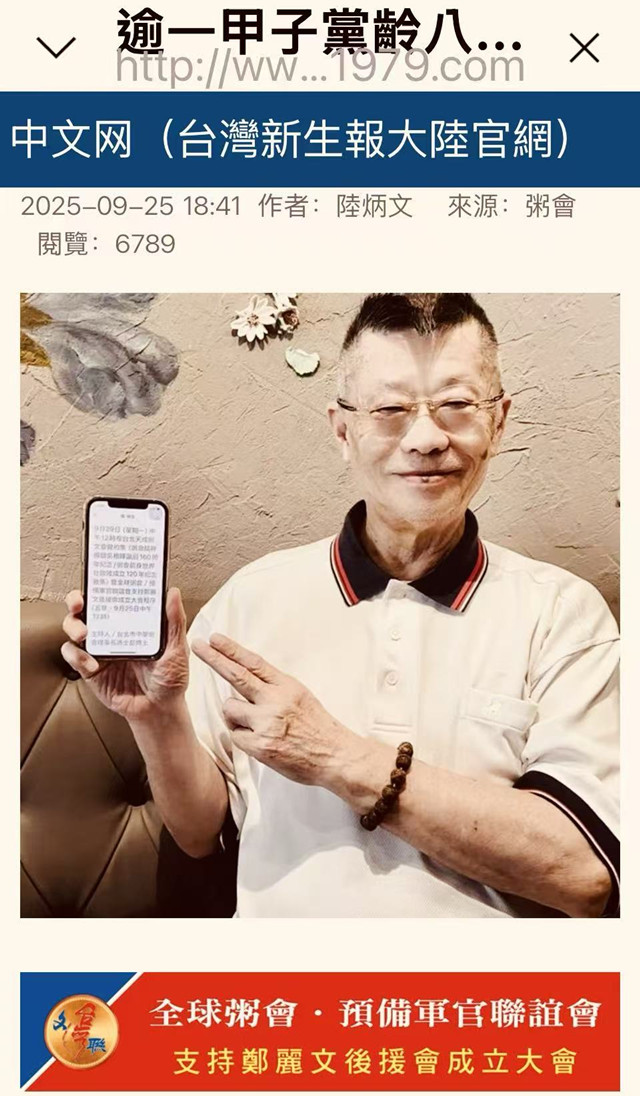 全球粥會世界總會長、中華和諧粥文化民間非遺傳承人、預備軍官聯誼會會長、第15期政戰預官陸炳文博士,甫在全球粥會官方網站www.qqzh.org上,發表《六位都很優秀傑出但是我選最適任的“復興女俠”鄭麗文》一文,旋即收到數以百計反饋留言板,其中百分之七十三強贊同、“肯定”我們抱持的共同理念。