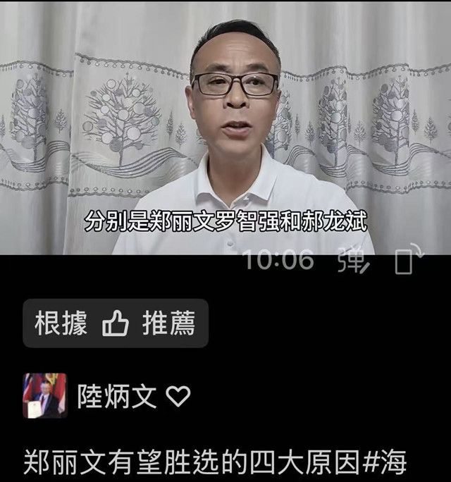 例如曾任中央民意代表甲君稱:小弟我追隨敬愛的、陸教授炳文大哥大,奉陸大人旨意、支持鄭麗文,恭請聖裁;百分之廿五尚“未定”人選者,猶樂見優秀人選會出線,有如某社團負責人乙君,風度極佳表示:陸老師好,「兄弟爬山,各自努力」;僅不到百分之二“否定”適任者,像是丙君態度較差,竟然放肆出言不遜,老友似乎情有可愿,衝動良堪予以憫恕。