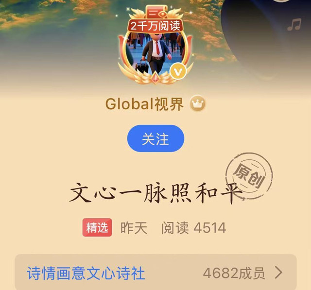 便會聽見/每顆心都自信自豪,清晰如磐——“我是中國人”,是血脈的宣言/是文心共守的赤誠,從未改變。文心相映,山河同春/筆墨為證,歲月為鄰/這一脈相承的暖,終會照亮/每一寸共屬的天地/照亮每個同胞眼底的光/讓中國人的驕傲,在血脈裡永遠滾燙。