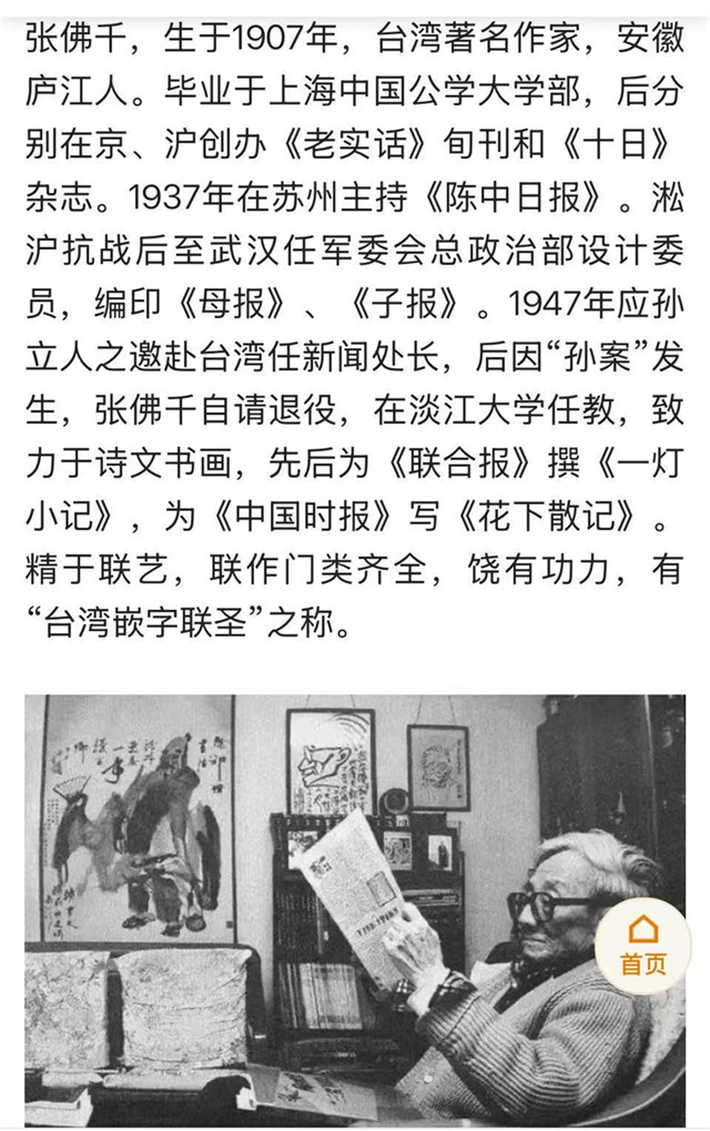 識者結語,文筆典雅、扣合全文主旨,並延續張佛千、孫立人與陸炳文,三線交織的歷史與文化意義。兹得如下短文曰:張佛千「聯聖」一生,雖不能為孫立人將軍,平反撥雲見日,然其筆力所至,卻能在政海風雷、與時局沉浮之外,為後世留下一部部、可以長照的華夏文心。聯墨之間,既寄托其報國情志,也見證一代文人的風骨與清操。