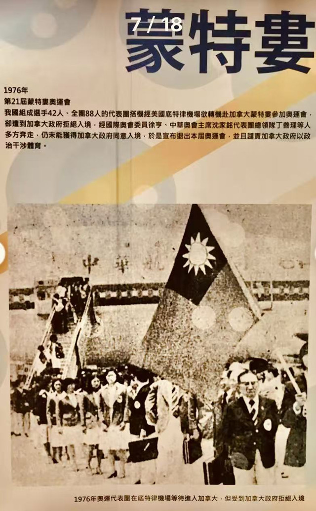 答:1976年蒙特婁奧運,中華代表團遵守奧會憲章精神,始以國際奧會認可的「中華民國」(ROC)名義參加奧運,我且早已擬妥《應急危機管理計劃》,內含五套應變方案、代號ABCDE五案:A案/全團授旗後逕飛美國洛杉磯再轉往加拿大,B案/特殊狀況下不授旗分批經洛杉磯轉加拿大,C案/倘洛杉磯轉機受阻分遣小隊飛波士頓待命,D案/若開幕前仍無法入境加拿大則集結洛杉磯,E案/假使不得要領考慮根據指令全團打道回府。後來情況演變果真如此不出所料,先遣人員包括總幹事湯銘新、總教練楊傳廣、女總管理紀政等多人,實質上已經在7月1日進入選手村,卻發現氣氛相當詭異,因為加拿大政府受到中國大陸壓力、脅迫將取消和加國政府所訂購小麥的合同,竟於奧運會開幕前通知國際奧委會IOC,拒絕我國選手以中華民國(ROC)身分入境,經過國際奧會折衷後,雖然可以拿國旗與播放國歌,但只能以Taiwan名義參加該屆奧運,使得台北「家裡的大人」,認為被矮化而拒絕出賽。