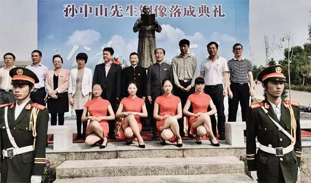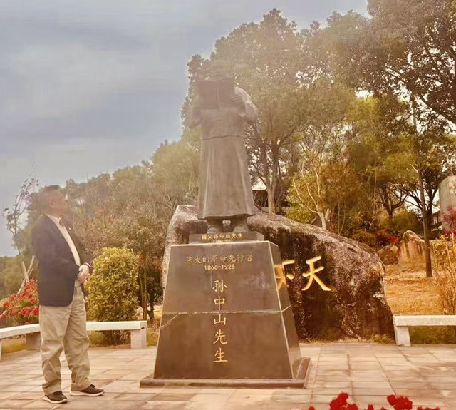 這一尊銅像係孫扶道人哲嗣、粥會名賢孫科之女、廈門市中山華僑研究會創會會長、孫逸仙和平教育基金會主席、我的舊識孫穗芳女士所捐贈,並且在我與余光中粥賢共同揭幕落成啟用的「世界文化名人邨」,2016年11月15日舉行了隆重的揭幕儀式,以紀念孫中山誕辰150周年,弘揚其博愛思想、及世界大同理想。陸炳文今天才透露,同時進一步補充說: