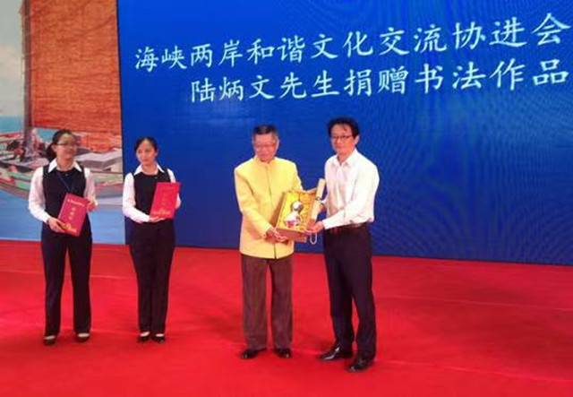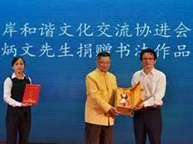第8次重走「閩台緣」,2016年5月18日,適逢國際博物館日、「閩台緣」開館10周年慶,在館內隆重舉辦,我受邀前往受獎,還為此次活動題寫“橋緣相通”詩詞書法作品,一併捐贈了余光中親筆的“媽祖福安”平安米罐,該罐將大陸與臺灣平安米融合,寓意“兩岸一家親、共圓中華夢”。