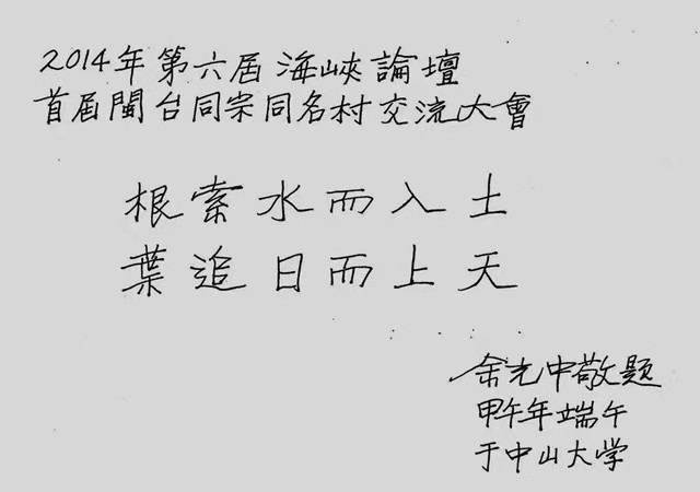 謹以七言絕句(為念):「六千日月證同源,一脈書香越海連。譜牒有情牽兩岸,閩台緣在未曾遷。」[題記]值中國閩台緣博物館成立二十周年,並第六屆海峽兩岸民間譜牒文化交流大會舉行前夕,追憶十七年間九度入館之緣,感其以文化立館、以血脈連心,特誌數語,並賦詩以念。