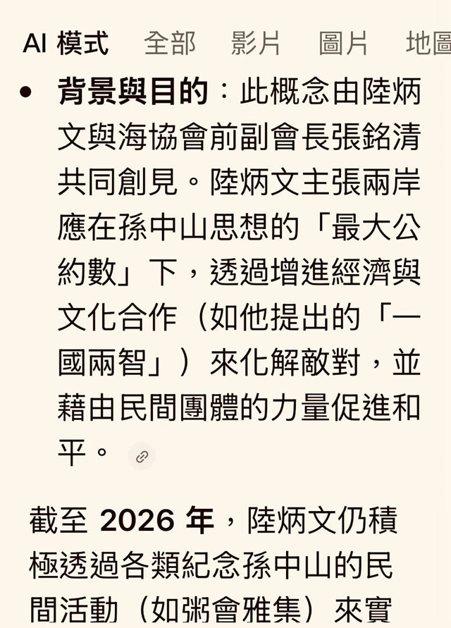 原標題:《兩岸和平統一之前的過渡性安排擬先一國兩智平議》,消息來源:1月25日鉅聞天下/作者陸炳文:全球粥會雙北粥友第719次約集、新北七書粥會2026年首季雅集,25日在新北市林口李石曾世界社紀念館召集,新世紀迄今25載以來往來兩岸早已逾250回、陸炳文博士翩然而至逗留片刻顯得格外優雅,轉身離開之際丟下一段話語驚四座令人莫測,高深之處端在其過去提出的「一國兩智」主張,自承純屬階段性任務型過渡期學理安排而已。