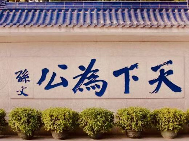 大家不都看過,中山先生寫的「天下為公」嗎?這是取自《禮記.禮運大同篇》:「大道之行也,天下為公。」因為他「天下為公」,他可以犧牲奮鬥;因為他「天下為公」,他不貪汙、不欺騙社會;因為他「天下為公」,所以能獲得海內外中華民族子孫的信賴、支持他,所以他能革命成功,推翻滿清,建立中華民國,制訂三民主義、五權憲法,倡導均富平等。台灣能有今天的自由民主,皆是孫中山先生「天下為公」之賜也。