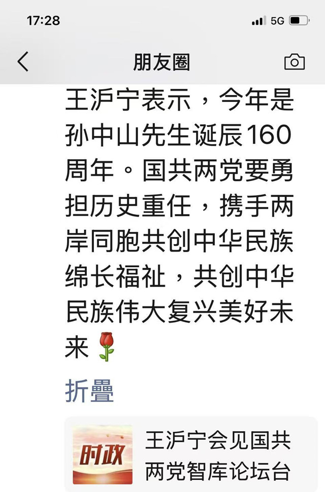 和諧,從不是空喊口號,而是一步一腳印的累積;統一,更非躁進之詞,而需歷經包容、融合、與和諧的長程鋪墊。值此生朝之日,友朋相賀、眾心同祝,尤顯民間力量之溫厚與堅韌。重走中山路者,走的不是回頭路,而是以歷史為鏡、以百姓為念的前行之路。