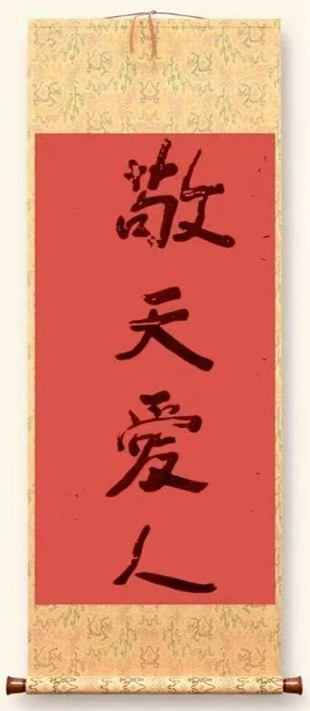《敬天愛民》/《敬天愛人》,四字之義,「敬天」者,敬公理、守天道、畏歷史之評價;「愛民/愛人」者,體民瘼、順民意、以蒼生為念。其核心正在提醒執政者:權位可更迭,天命不可違;政黨可競逐,民心不可失。吾等傳給之用意,並不在歌功頌德,而在於口傳心授,以書為諫、以墨傳道,期鄭主席於「百日維新」之後,更能上承中山天下為公之志,下踐右任愛民如子之行,信守天命天意,回應民心民意,使得改革有本、維新行穩致遠。