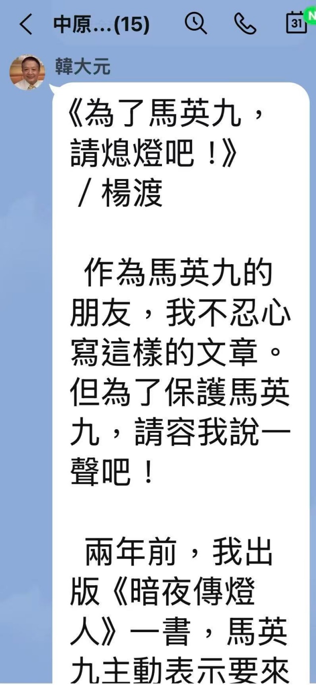 從歷史觀現世,唯有深深的悲憫。我只能奉勸馬英九家人、和基金會董事,為了愛護故人的緣故,請熄燈吧!