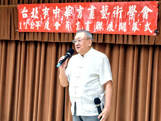 「今天由臺北市中華粥會理事長,兼臺北中華書畫藝術學會理事長的馮士彭博士,主持貴會112年度會員聯展,個人受邀出席開幕式,既高興又榮幸!因為我們有過一次,愉快合辦活動經驗,那就是2016年12月12日,在臺北市中山堂光復廳舉行<海天共一色:太平島光復70周年圖片展>,馮博士擔任會展司儀,我作為本次大會主持人,站在台上回顧史實,強調再次光復台灣、亦即矢志收復失土、重光中華的必要性!」