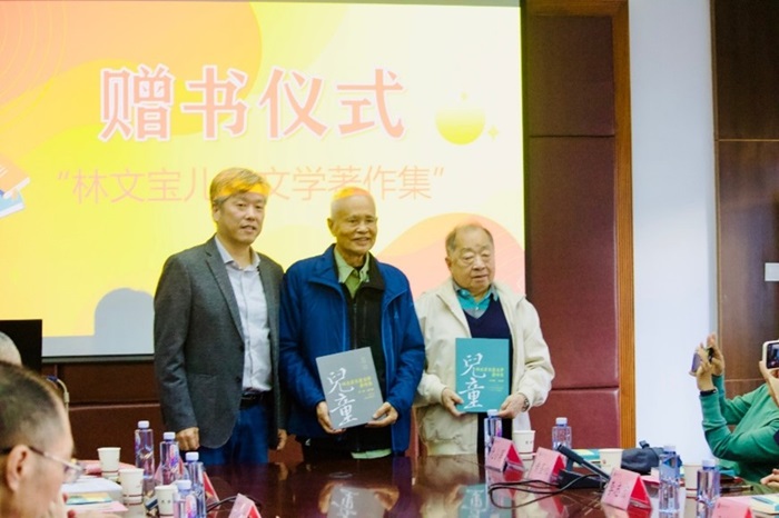 - 最後,梁錦興總經理與林文寶教授致贈《林文寶兒童文學著作集》全套給福建師範大學文學院;福建少兒出版社致贈每位參與者《兒童文學故事體寫作論》一本。