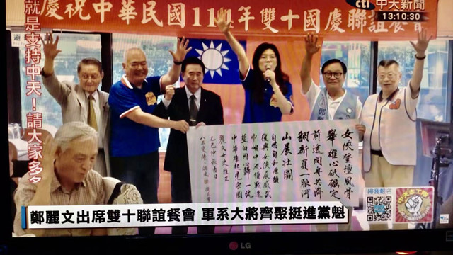 針對另一黨主席候選人,同一時間在台北另一處,找來40名將軍力挺他,外傳如何如何賣力演出,其實知情記者都心知肚明,將少兵更少虛張聲勢而已;臺灣海峽兩岸和諧文化交流協進會會長、全球粥會總會長、預備軍官聯誼會會長、黨齢64年陸炳文博士,出席慶祝雙十國慶聯誼餐會,大致數了一下現場參加的退役將領,由夏灜洲、季麟連兩位上將領銜,就超過100位,3倍以上於對手,優勢明顯,高下立判。