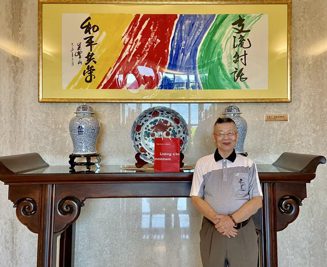 今天上午拜會海基會,被暱稱“陸老”之、海峽兩岸和諧文化交流使者陸炳文博士,見到了要想見的老朋友,又在一樓大廳內,看到了一座銅雕,那是兩岸藝術家楊奉琛、朱炳仁大師共同之傑作,為辜汪會談20週年共同創作的藝術品,具有向天祈福、許願雙重意涵,交流對話、和平共榮;台海太平、两岸共榮。