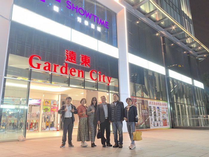 包場支持電影《大濛》後,中華敦信商道交流協會創會理事長方敏燕、理事長方睿騰等在台北大巨蛋秀泰影城前合影。\;