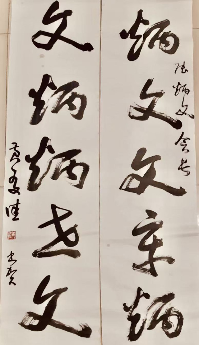 其實3載之前在我母校台師大,黃友佳盛讚余收藏“如意大王”,業已贈送過一聯,似曾相識語句云:「炳文文章炳,如意意自如。」僅與新作〈炳文五言聯〉,上下聯媲美,共6字有別,並標草作書,分享眾粥友,共擁精神財富,共賞佳聯雅趣,一時之間就爆紅,校園裡傳為美談!