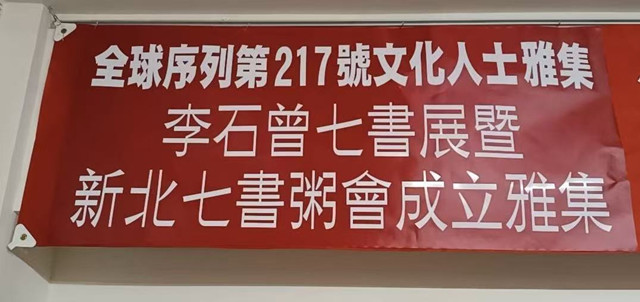 黃大師立馬答:您的名字頭銜也美!陸謙稱:姓陸始自先祖放翁,台甫炳字輩開基祖,八閩十邑古田縣城東街道、永洋村之十都六保永洋境,郡望懷桔堂本東吳孝子家,拜昭穆「長、永、“炳”、志」輩序所賜(祖父陸長操,父親諱永達,子炳文炳武,長孫名志豪),取名“文”兼得父母雙親美意!黃:改天有機會見面時,當面呈送給您。陸:擇日不如撞日,撞日不如明日,就是25日好了,巧聯正好妙對,明贈予陸炳文,場合正是李石曾七書展開幕式,暨全球序列第217號文化人士雅集、新北七書粥會成立大會上。