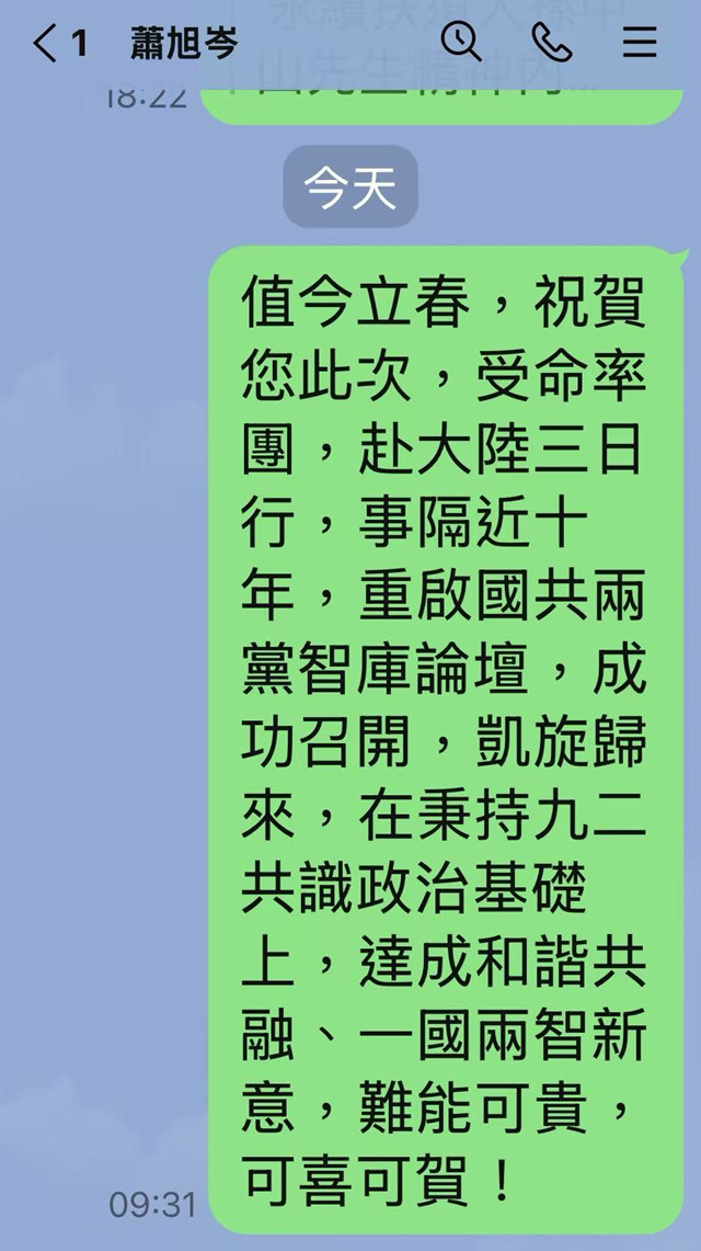 在陸炳文評分之前,有必要先觀察一下,蕭旭岑三天北京行,針對近期才落幕的、國共兩黨智庫論壇,環繞兩岸交流合作前瞻議題,講了該講的話,談了該談的事,見到該見的人,得到該得的物,三加一個應該,輿論與媒體總結了,以下三二一個重點:
