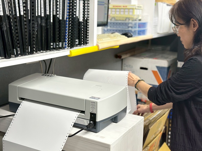 而目前中心使用的製圖機器有2台,自民國103、105年啟用,十餘年來開始有頻繁點陣跑位的情形。她解釋,團隊每列印一卷教材需要一小時,重印就會報廢200至300張點陣報表紙,製作時間也會延長到半天以上。