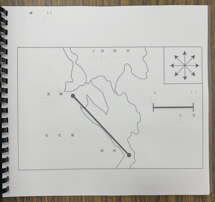 社會科試卷的觸摸圖冊列印成品。(圖_台北市視障者家長協會提供)