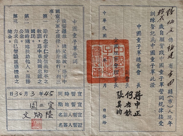 今天3月5日,乃童軍節,也是陸炳文,1956年3月30日,因獲宜蘭中學頒發、初二模範生榮譽牋,得以保送宜蘭二團,宣誓加入中國童子軍、並授予證書70周年慶;當年誓詞第一句,為「我誓遵奉 國父遺教」。值此共同紀念國父孫中山逝世101周年、同慶孫中山誕辰160周年之際,回首近代童教發展史事紀要,始知中國童子軍運動興起、與中華民國建立、及國父密切相關。