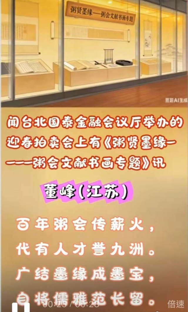 文化,是跨越時空的橋樑;墨緣,是連接兩岸的紐帶。願此次專題拍賣圓滿成功,墨香廣布,知音咸集;願百年粥會,文風不墜;願兩岸文脈,如春風拂面,生生不息,歲歲流芳。寒章謹此,向歷代粥賢們致敬!向粥翁陸炳文老師致敬!