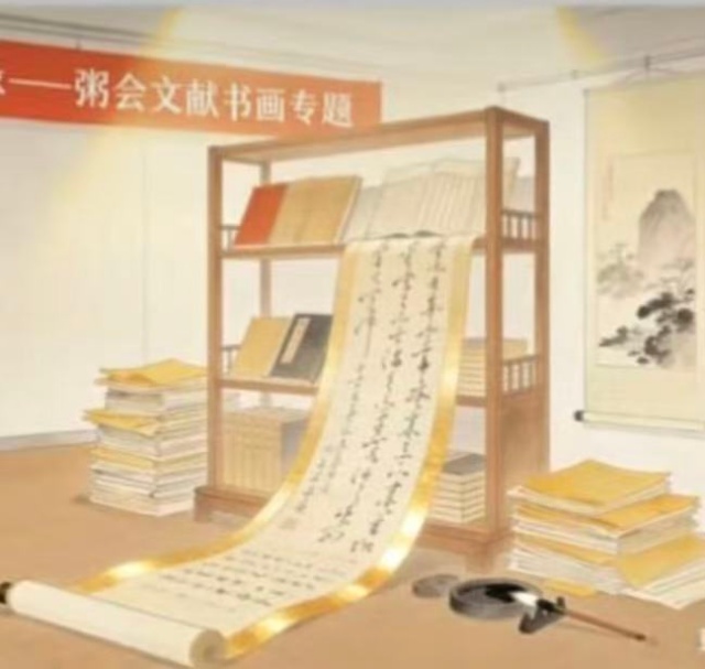 改寫示例(僅供思路參考):「百載文盟情未已,粥香一脈貫春秋。此間翰墨傳薪火,筆底煙霞映九州。」[調整說明]1. “情未已”:較“續道友”更含蓄,且留有情感餘韻。2. “此間翰墨”:以“此間”替代“雅集”,既避免了名詞堆疊,又將鏡頭聚焦於當下場景,增強現場感。3. “煙霞”:較“風華”更具畫面色彩,與書畫題材更貼合,同時保留“映九州”的宏大氣勢。
