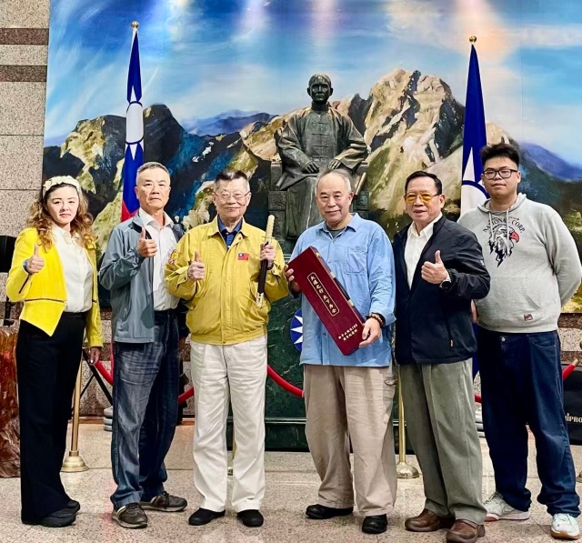 同(4月8)日,榮譽出品限量版“中山紀念劍”,主創團隊負責人、全球粥會總會長、孫中山文化研究中心主任陸炳文博士,則手持著“中山紀念劍”樣品實劍001號,前往國民黨中央黨部,在一樓總理銅像前,舉行簡單莊嚴之寶劍首投緣結吾黨敬獻儀式,亦即粥會扶道人孫中山誕辰160周年紀念系列活動、海峽兩岸重走中山路起手式之延伸行動。