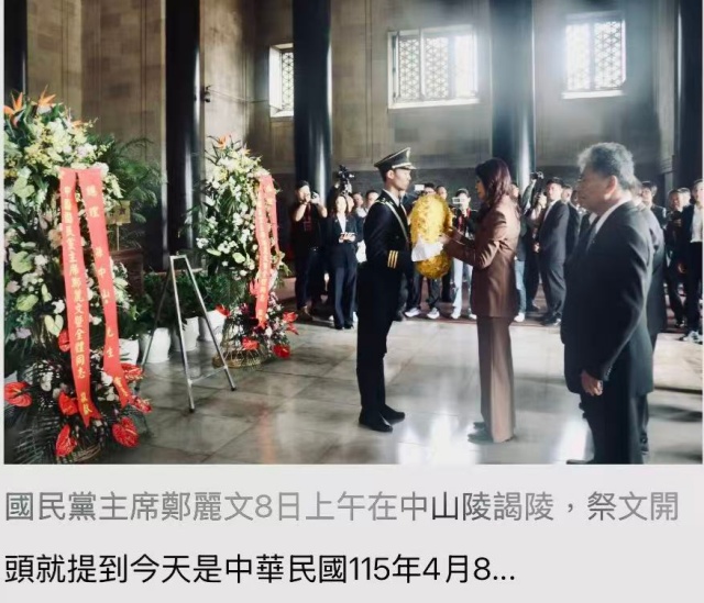 28載之後的今天、2026年4月8日,中國國民黨主席鄭麗文,「2026"和平之旅"」偕同三位副主席,率領14位國民黨訪問團,行程第一站便拜謁南京中山陵,恭向總理孫中山敬獻花籃致祭;這次由中共中央和習近平總書記之邀請,鄭主席受邀前往大陸訪問6天,行前在國民黨中央黨部的中外記者會上,鄭麗文重申並強調,此行意義重大,維護台海和平,增進人民福祉。