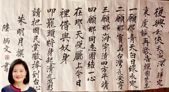 陸炳文今衷心期盼,從四月十日成功的北京「鄭習會」,圓滿帶回去的禮物是「和平」,開始改稱中國國民黨主席鄭麗文,原有的「五號復興女俠」,因為七月七日將在台北,被授予第十號「中山纪念劍」,而成為道地的「十號和平劍俠」。