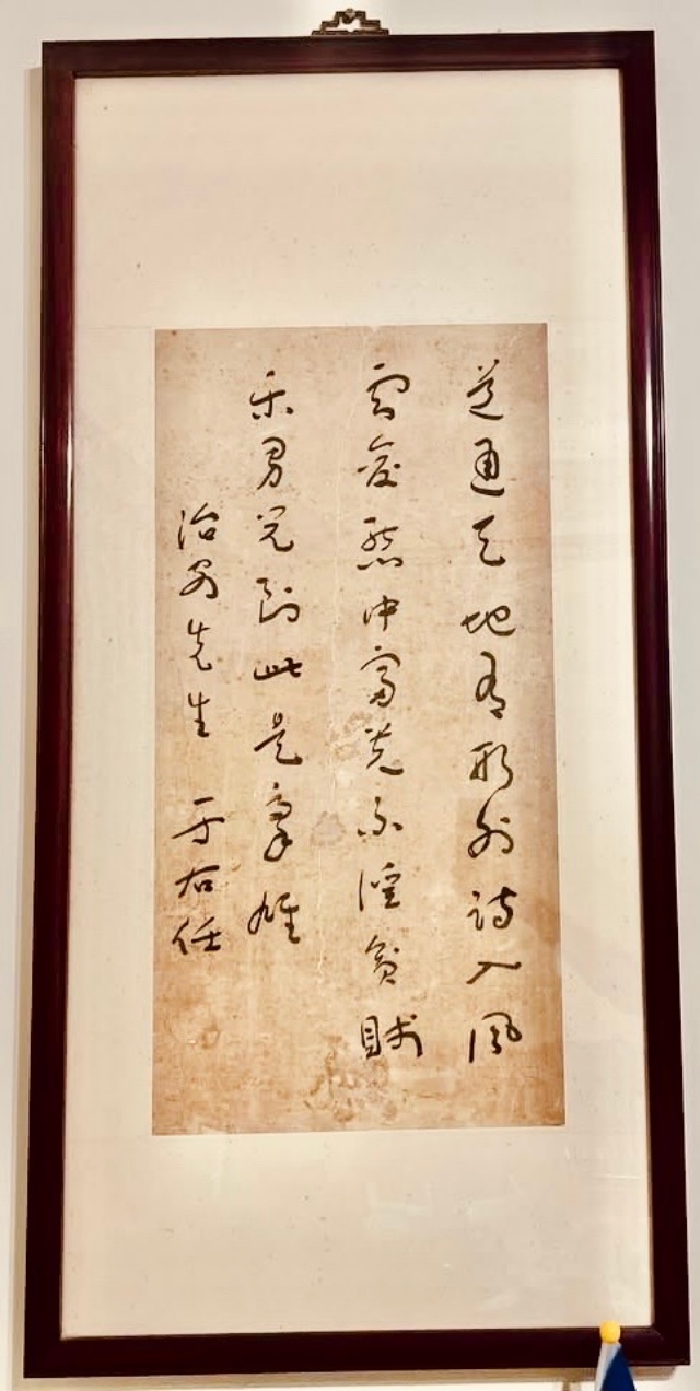 由此可見,董同學家祖傳之、這一幅碑學底蘊、與儒家心法完美結合的傑作。于右任用剛強、硬朗的筆觸,書寫了超越世俗、胸懷坦蕩的豪邁詩句,展現了書法藝術,在表達精神力量上的獨特魅力。它不僅是中國書法上的瑰寶,而且突出「劍拔弩張」代表作,更是右老人格魅力的具象化。