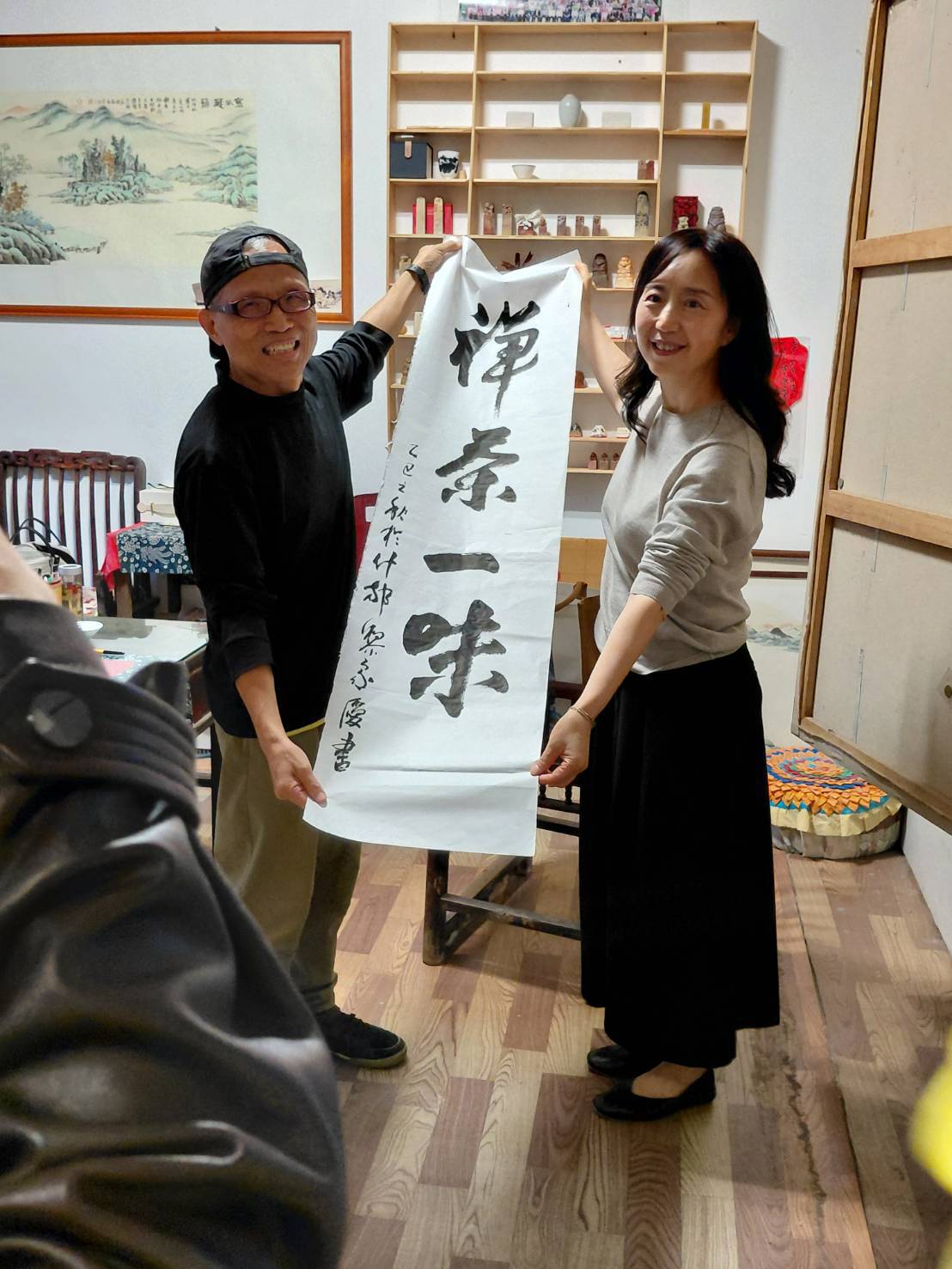 除了茶道專家,也有書畫家共襄盛舉,就著現場飄散的茶香花香,吟詩寫字,作畫填詞,把茶飲文化提升到一個無比崇高的境界。詩人畫家轉身歇筆,又拿起一杯茶,幾次黃湯下肚,文思泉湧,創意無限,茶湯可以說是藝術創意的催化劑。而且行程之中除了品茗對飲,和開筆書畫觀摩,還有數次室內或戶外的筆會寫生,兩地畫家可以共同創作一幅捲軸,兩岸書家可以前後賦詩其上,彼此唱和。其間大可互敬一杯茶水,兩岸兄友弟恭,和樂融融。反正有了茶喝,話題自是不斷。在戶外任意揮毫時還有些不請自來的,隨著茶香蜂湧而至,蚊蠅蟲蝶都來相伴或干擾,但都不妨,不礙心中那種,以文會友,以友輔仁的熱切願念!尤其是每每常在晚餐之後,也無意上街採買遊覽,只想回到大廳長桌,攤開宣紙,繼續書畫的創作,或是探討琢磨,或是互贈書作,少不了都有一杯好茶案前相伴,唇齒留香,談興濃厚。原來文人雅士齊聚一堂,大家的興致和文采,更是格外的高昂熱烈!