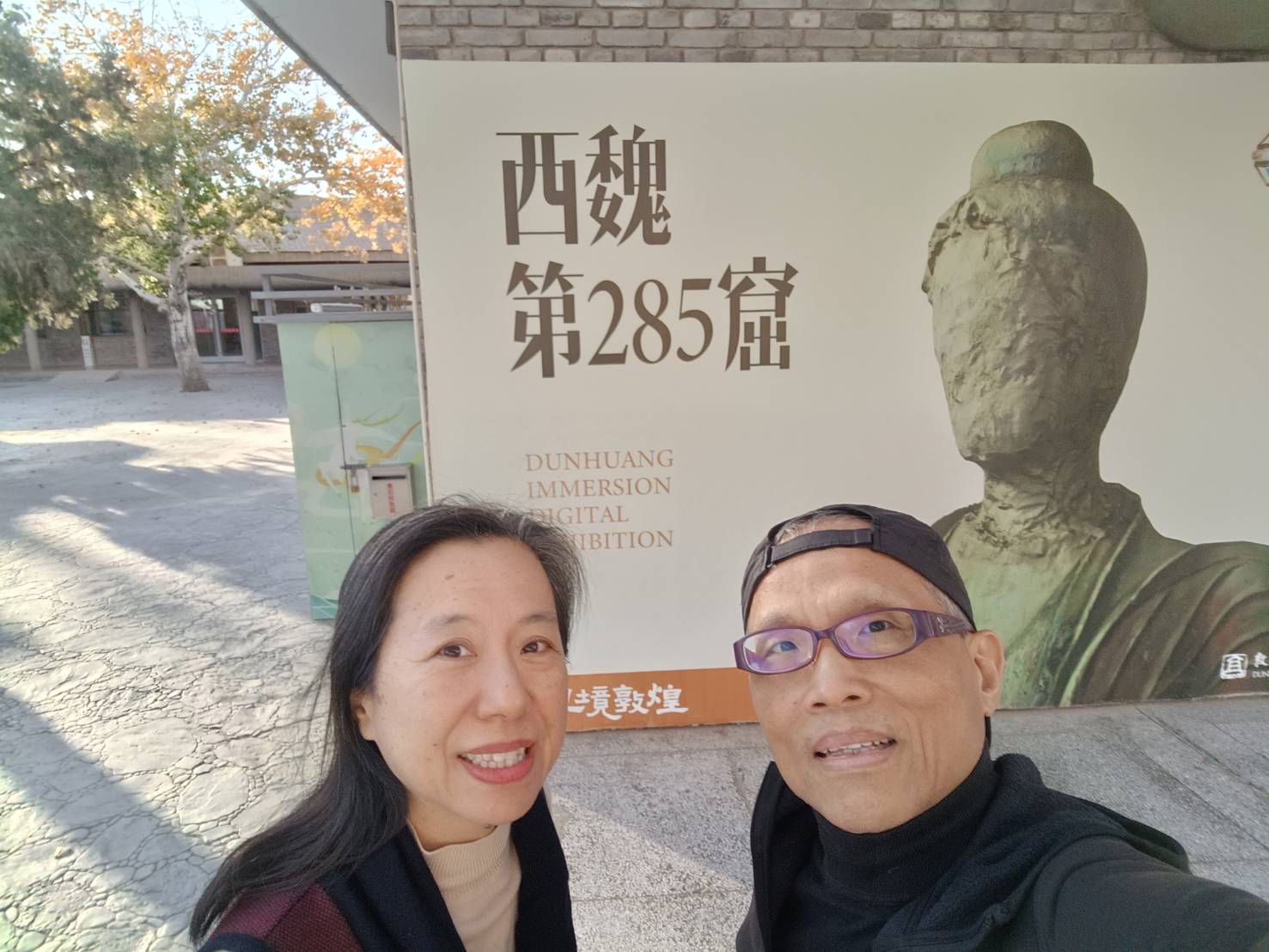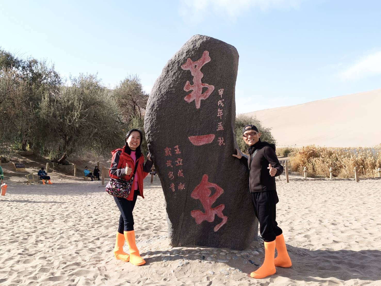 今年8月初訪鳴沙山,沒想到10月而已,受到北京謙哥和春雨馮博士的邀請,我又回到敦煌。然而三毛何在呢?原來三毛在生前曾經說過,希望一半葬在台灣,一半就放在鳴沙山上,甚至她把地點方位都選好了。多麼空靈玄妙的作家三毛,千挑萬選找到了鳴沙山作為他的歸骨所,這座山我來過兩次了,根本就是神山。簡單說就是黃沙蕩蕩,純然潔淨的沙粒堆起山丘,白天艷陽高照,遊人如織,已經是驚艷絕景。但是夜晚大西北的狂風,又將山丘吹聚得更為高大挺拔,流沙伴隨風聲嗚咽,四面八方作響,據說是五音齊鳴,一如仙樂飄飄。山腳下還有月牙泉幽靜清新,但是它玄的是,既找不到地底源頭,也不見其它入水口,但是千百萬年以來,滋潤西北大漠眾生,狂風吹不去,太陽曬不乾,問君哪得清如許?可能源頭活水就在你我的心中。