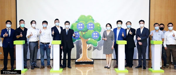 南科管理局副局長蘇振綱、鄭秀絨帶領園區生醫廠商展示從科技防疫到精準健康技術亮點,其中還包括電腦輔助術前計劃系統、心臟幹細胞製劑及腦血管幹細胞製劑、骨科及顱顏口腔手術導引系統、植牙導航定位系統、智慧影像分析系統及自動光學檢測系統、體外脫針漏血警示系統、生理監測儀等成果。