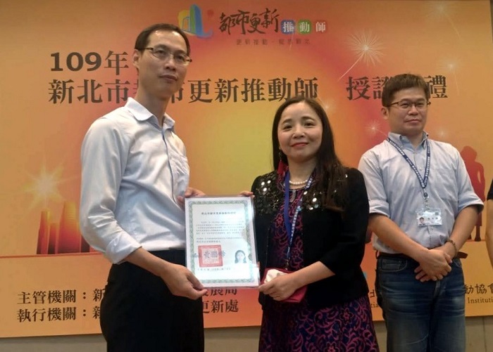 【記者王輝丹/新北報導】一○九年新北市都市更新推動師授證典禮日前在北市舉行,由新北市都市更新處處長張壽文主持授證。新觀念資產管理顧問董事長張采明接受證書後,建議針對海砂屋、災損或急需立即改建的社區,政府是否可采取先安置後拆遷的作法,大幅縮短原始地主另覓住處的時間,並迅速的完成社區的拆遷改建。兼顧人道、效率和安全等需求,再造台灣天際線和國際形象。