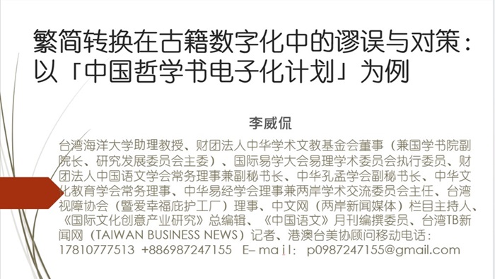 6.李威侃 繁簡轉換在古籍數位化中的謬誤與對策 臺灣海洋大學