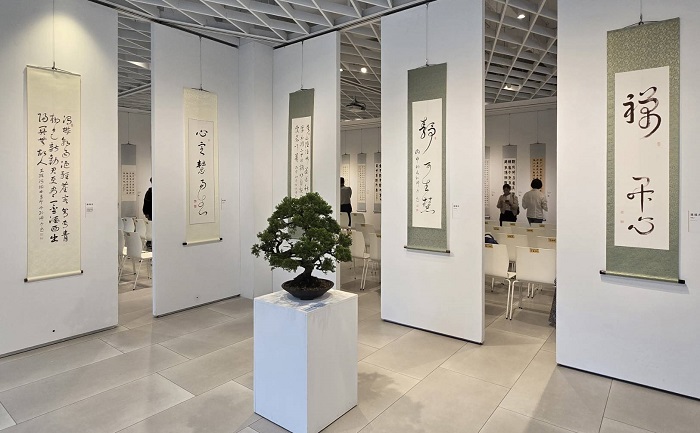 孫端吉教授墨藝專展,草書融合太極與靈性功法,筆勢流動,氣脈相連,展出11幅典藏墨寶,值得細細品味。主辦單位和氣大愛文教基金會為鼓勵各教育階段學生及社會人士,重視中華傳統文化與藝術,持續去年第一屆比賽深化其影響力,以各組首獎至三獎作品做展覽,以肯定其書藝成果,並與社會進行作品交流。比賽以「孝親報恩」為主題,詩詞雅句為副題,並增加「春風化雨玉才獎」,表彰對培育後進之師長,11位得獎者作品五體兼備,展現用心與實力。