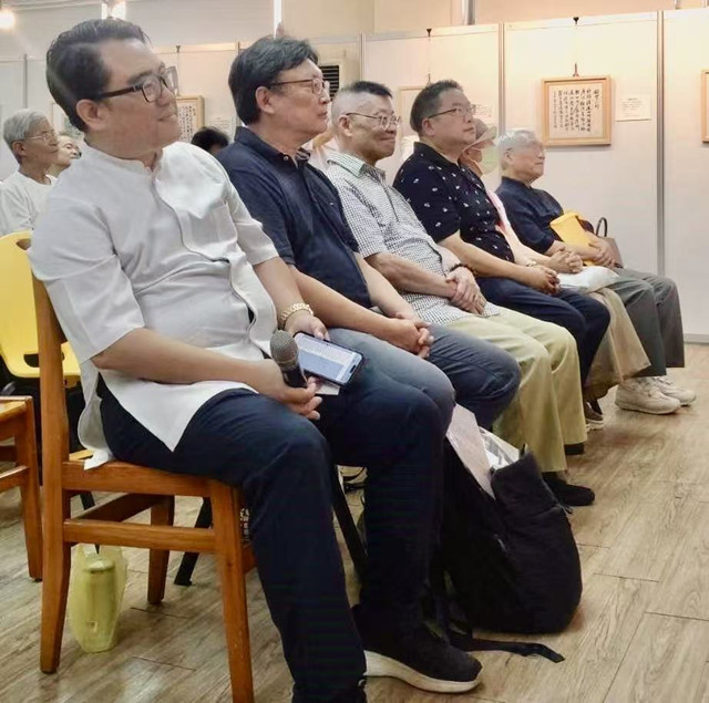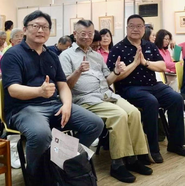 《自己的鼓聲:廖慶華·曾淑貞正能量詩文書法展》,9月20日下午兩點在台北市内湖區康寧大學、圖書館三樓之藝文特區,舉行既簡單又不簡單的、開幕茶會雅集,因為請到多位重量級之、特邀嘉賓站臺,包括前行政院海巡署署長王進旺、前行政院參事兼第七組組長陸炳文,雙雙蒞臨現場參觀展品自我學習,陸博士還被邀請上臺第二位致詞。