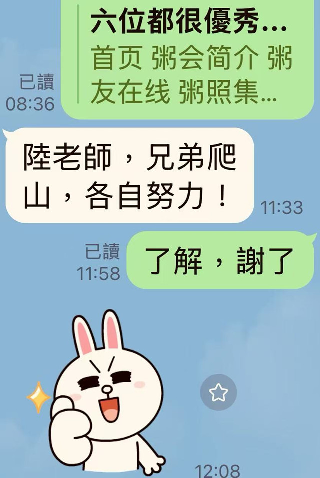 今天有幸站在這裡,我謹代表全球粥會、與預備軍官聯誼會,鄭重宣示莊嚴正告:我們全體支持“復興女俠”鄭麗文!我們全面捍衛和平遠離戰爭!我們全力推動中華民族復興!謝謝大家!祝福大家!