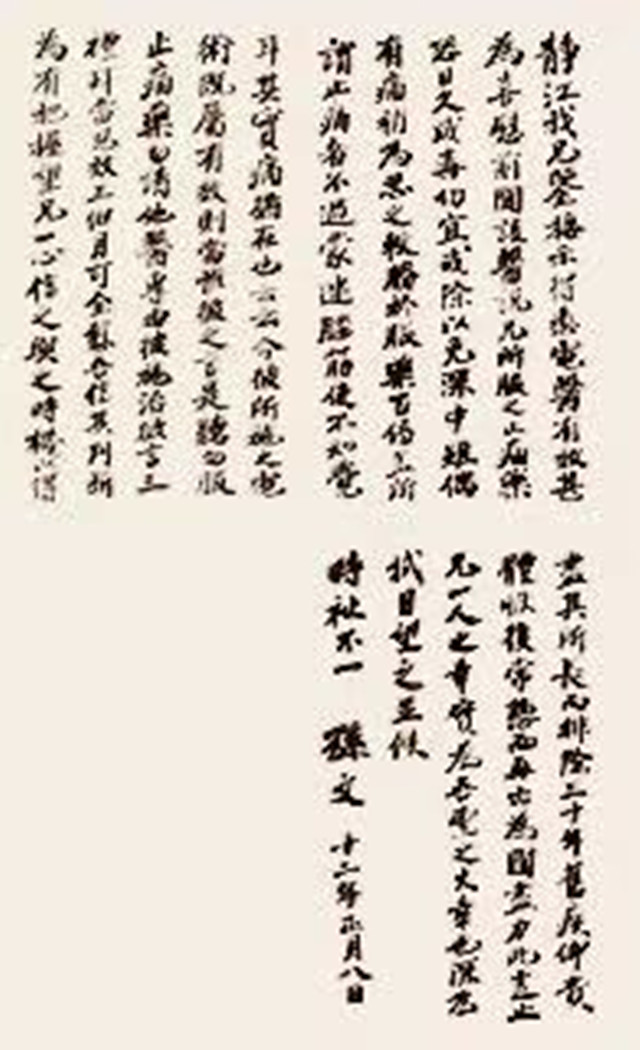 上述兩封劄函,雖然字數不多,但在字裡行間,滿懷孫中山對張靜江,身體健康上的關懷、和政治上的高度期望。孫長張整整11歲,為何如此關懷老棣?因為除了上醫醫國、彼此尊重有加之外,而張靜江20年如一日,追隨並支助孫中山革命,兄弟之間既存在人生的、飛揚展開,交錯並行,也有著惺惺相惜,文人相交的高貴情操和氣質,誠屬不易,難能可貴。